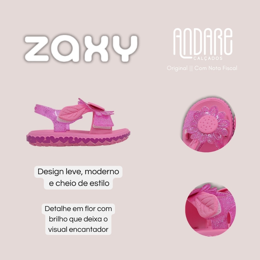 FORMA: Normal (ver tabela de medidas) CABEDAL: Sintético de alta qualidade, detalhe em flor com brilho e aplicação decorativa, tiras reforçadas PALMILHA: Anatômica, macia, com absorção de impactos FECHAMENTO: Fita aderente para ajuste prático e seguro SOLADO: Emborrachado, antiderrapante, com relevos em formato de corações INTERIOR: Macio, confortável, acabamento que evita atritos ESTILO: Infantil, casual. ENVIO: Caixa original do fabricante GARANTIA: 30 dias contra defeitos de fabricação A Sandália Infantil Zaxynina Menina Spring foi desenvolvida para unir charme, delicadeza e conforto em um único calçado, ideal para acompanhar os primeiros passos e os momentos de lazer das pequenas. Seu design encantador com detalhes lúdicos torna o modelo perfeito para compor produções cheias de estilo e alegria. Confeccionado em material sintético de alta qualidade, o modelo oferece resistência, durabilidade e maciez, garantindo um ajuste seguro e confortável ao longo do uso. A estrutura é leve e flexível, pensada especialmente para acompanhar a rotina infantil. O cabedal apresenta acabamento moderno com aplicação de laço em formato de flor, trazendo um toque divertido e cheio de personalidade. Além disso, conta com tiras reforçadas que envolvem bem o pé, transmitindo firmeza a cada passo. O sistema de fechamento é por fita aderente, que proporciona praticidade no calce, permitindo que a criança tenha mais autonomia ao colocar e retirar o calçado, além de garantir um ajuste personalizado ao pé. O interior é macio e confortável, desenvolvido para evitar atritos durante o uso. A palmilha é anatômica, acomodando os pés com suavidade, ajudando na absorção de impactos e contribuindo para o bem-estar durante longos períodos de uso. O modelo possui salto rasteiro, com altura baixa, ideal para o dia a dia das crianças, proporcionando segurança e estabilidade em todos os momentos. O solado é emborrachado e antiderrapante, com relevos em formato de corações que, além de trazer um toque lúdico, garantem excelente aderência às superfícies, promovendo mais segurança e confiança a cada passo. TABELA DE MEDIDAS Tamanho 17/18 - 13,3cm Tamanho 19 - 14,1cm Tamanho 20 - 14,9cm Tamanho 21 - 15,5cm Tamanho 22 - 162cm Tamanho 23/24 - 17,3cm Tamanho 25 - 18,2cm Tamanho 26/27 - 19cm
