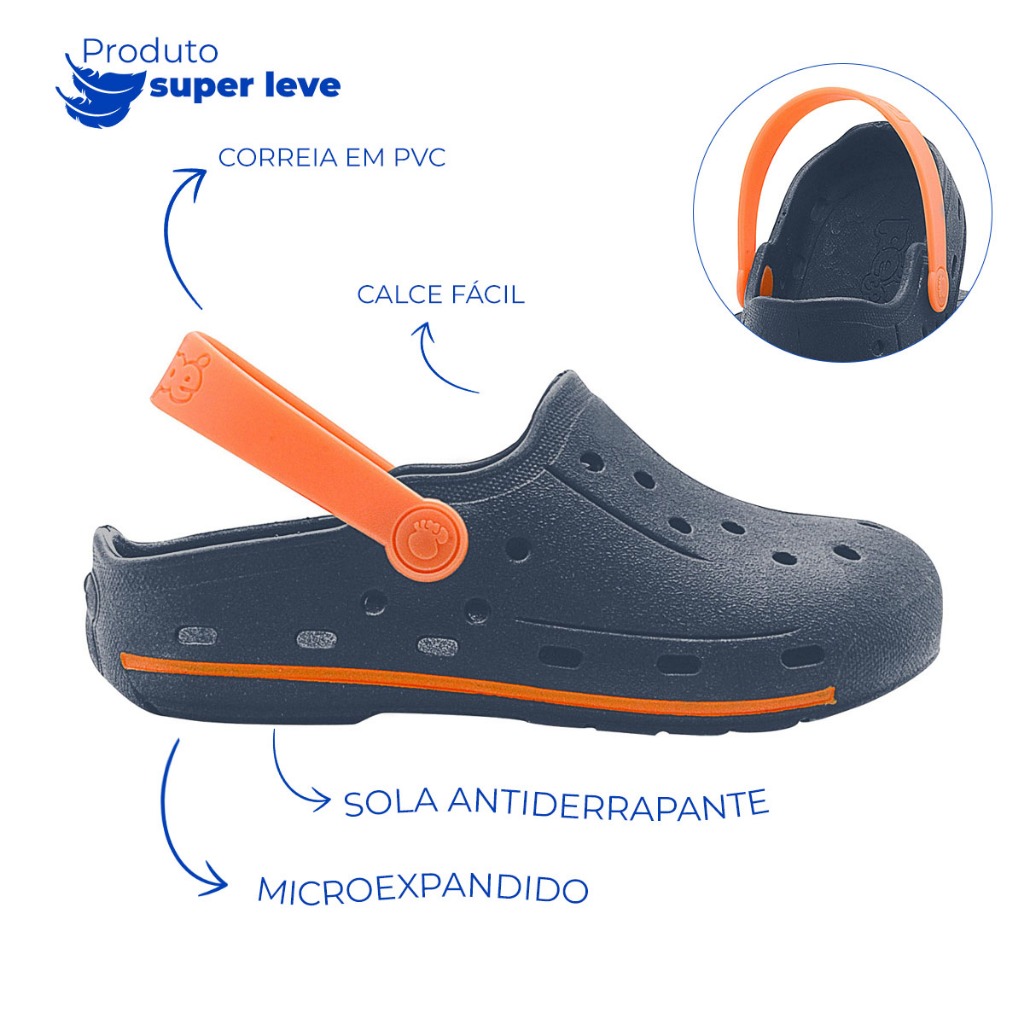 Babuche Infantil Menino Marinho/Laranja Dê aos pequenos uma experiência divertida e confortável com a Sandália Babuche Infantil Menino Leve Macio E Moderno. Feita de material leve e durável, essa babuche proporciona um ajuste seguro e confortável, perfeito para o dia a dia ativo das crianças. Com um design moderno, adiciona um toque sofisticado além de elegante transforma cada passo em uma diversão. Ideal para brincadeiras ao ar livre e momentos de lazer, essa sandália oferece praticidade e facilidade de uso com sua alça ajustável. Além de ser fácil de limpar, a babuche é resistente e garante a segurança necessária para as atividades das crianças. Escolha a Sandália Babuche Infantil Menino Leve Macio E Moderno e proporcione conforto e estilo para os pés dos seus filhos. A Pé com Pé é sucesso em todo o Brasil, sempre buscando o melhor, como toda criança merece! A missão é desenvolver produtos infantis que façam prevalecer os atributos para manter vivo o encanto de ser criança, prestando serviços de qualidade e que superem as expectativas dos clientes. ....... ESPECIFICAÇÕES DO PRODUTO ....... *Material Externo e Interno - PVC Micro Expandido Macio e Confortável *Correia - PVC Para evitar que o pezinho saia do calçado *Sola e Palmilha - PVC Micro Expandido Leve e Seguro Medida aproximada dos pés para cada numeração: Tamanho 19/20 --- 13.3 cm Tamanho 21/22 --- 14.7 cm Tamanho 23/24 --- 16.0 cm Tamanho 25/26 --- 17.3 cm Tamanho 27/28 --- 18.7 cm Tamanho 29/30 --- 20.0 cm