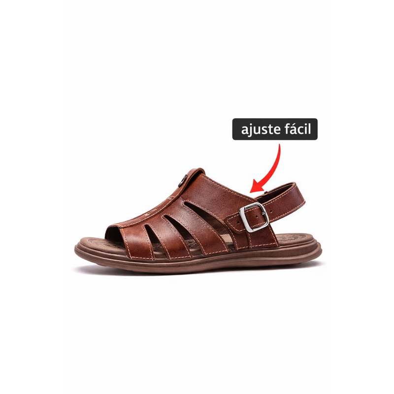 Sandália Masculina em Couro Legítimo Ortopédica Conforto Antiestresse e Antiderrapante