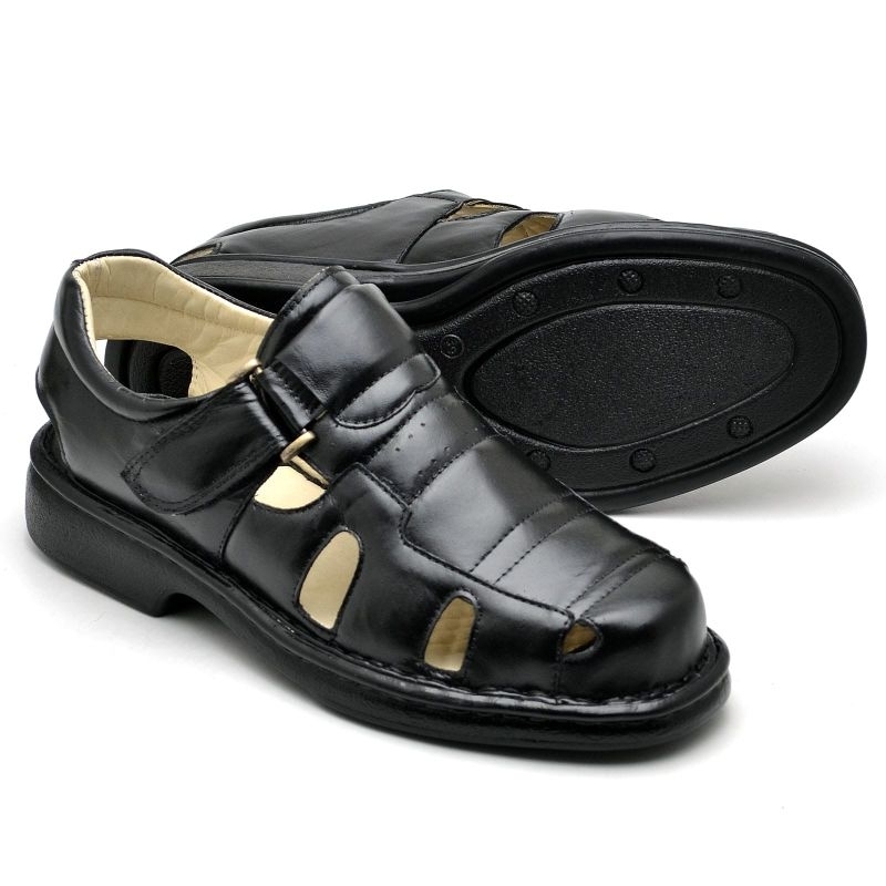 Sandália Masculina Ortopédica Confortável Leve Couro Legítimo Nobre