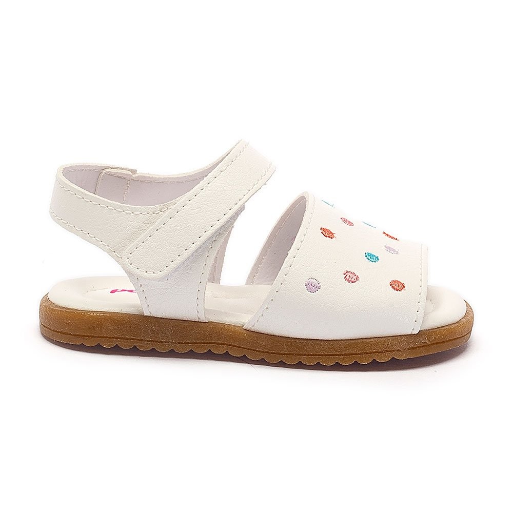 Sandália Menina Avarca Baby Um toque de brilho, cor e fofura nos passinhos do seu bebê! Inspirada no clássico modelo espanhol, essa sandália estilo avarca traz um design moderno e funcional para os pequenos, com visual super delicado e divertido. Confeccionada em material sintético macio, ela possui acabamento perfeito e bordados de poás coloridos, que deixam o look ainda mais encantador. O fechamento com velcro calce-fácil facilita a rotina dos pais e oferece ajuste perfeito. Já o solado antiderrapante garante segurança e firmeza nas descobertas do dia a dia. Características: estilo avarca – clássico repaginado para os pequenos; bordados em poás coloridos – toque divertido e lúdico; material sintético – leve, macio e resistente; fechamento em velcro – mais praticidade; sola antiderrapante – mais segurança ao caminhar. Ideal para compor looks fresquinhos com muito charme e conforto. Perfeita para passeios, festinhas e momentos especiais! Esse modelo vai da numeração 16 ao 22. Cores: Dourada, prata e branca, com poás coloridos. Como medir o pé da criança: Selecione com atenção a cor e tamanho correspondentes com a medida do pé da criança. É importante estar com as medidas certas para realizar a compra, evitando trocas e devoluções. Passo 1: Coloque o pé da criança sobre uma folha de papel, em uma superfície reta. Passo 2: Marque o calcanhar e a ponta do dedão com um risco. Use a régua ou fita métrica para medir a distância entre as duas marcas e descubra a medida em centímetros do pé. Lembre-se que a medição começa a partir do número 0. A seguir, observe na tabela de medidas o número que mais se aproxima da quantidade de centímetros do pé da criança. Tabela de Medidas: 16. 10.6 cm 17. 11.2 cm 18. 11.9 cm 19. 12.6 cm 20. 13.2 cm 21. 13.9 cm 22. 14.6 cm Sandália Menina Avarca Baby - Características Gerais do Produto: • Faixa Etária: Baby - até 2 anos (16 a 22) • Gênero: Menina • Material Externo: Sintético • Cor: Branca, Prata e Dourada • Solado: Emborrachado antiderrapante • Limpeza e Conservação: Lavagem manual. Não utilizar escova, detergentes ou solventes. Evitar molho e secar a sombra. • Tabela de Medidas: img/2025/07/produto/3866/tabela-de-medidas-linha-65.jpg Acompanha o produto: • 1 par de sandália 1 caixa de papelão Garantia: • Garantia de Fábrica
