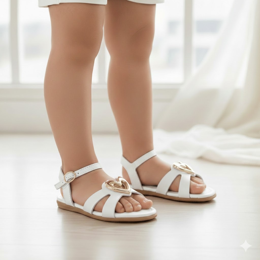 Sandália Menina Molekinha Bebê Infantil Baby Casual Feminino Coração Metalizado Corações Original