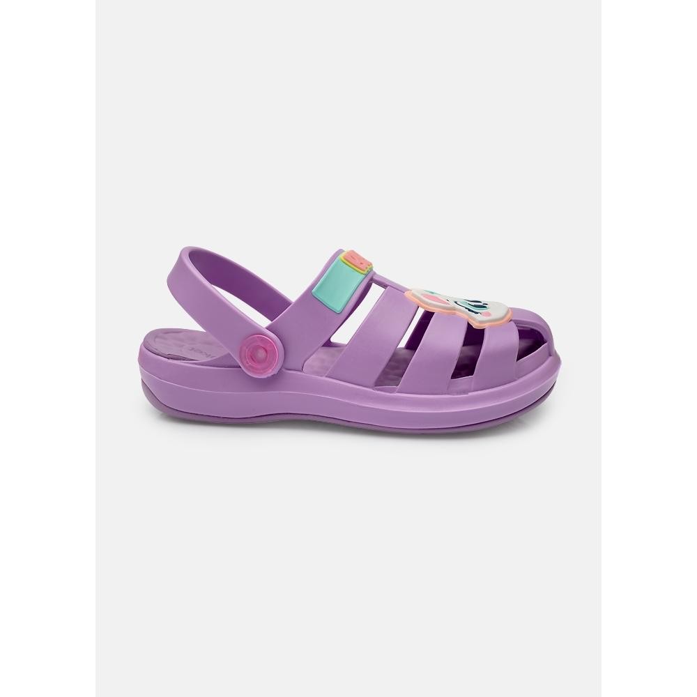 Sandália com tiras de PVC emborrachado. Possui alça móvel no calcanhar e detalhe de aplique de gatinha em PVC. Cor: Lavanda Material sola: EVA Material cabedal: PVC Grade: 27-28 / 29-30 / 31-32 / 33-34 Como conservar bem meu produto: Não expor à chamas vivas ou altas temperaturas, lavar a mão com sabão neutro e água corrente. Não utilizar produtos abrasivos como cloro e água sanitária, não lavar com escova abrasiva, não deixar o produto de molho, seque sempre à sombra, não guardar molhado. Garantia por defeito: Deverá ser encaminhado dentro da embalagem original; Sem indícios de uso; acompanhado de nota fiscal e com todos os itens constantes na solicitação de troca.