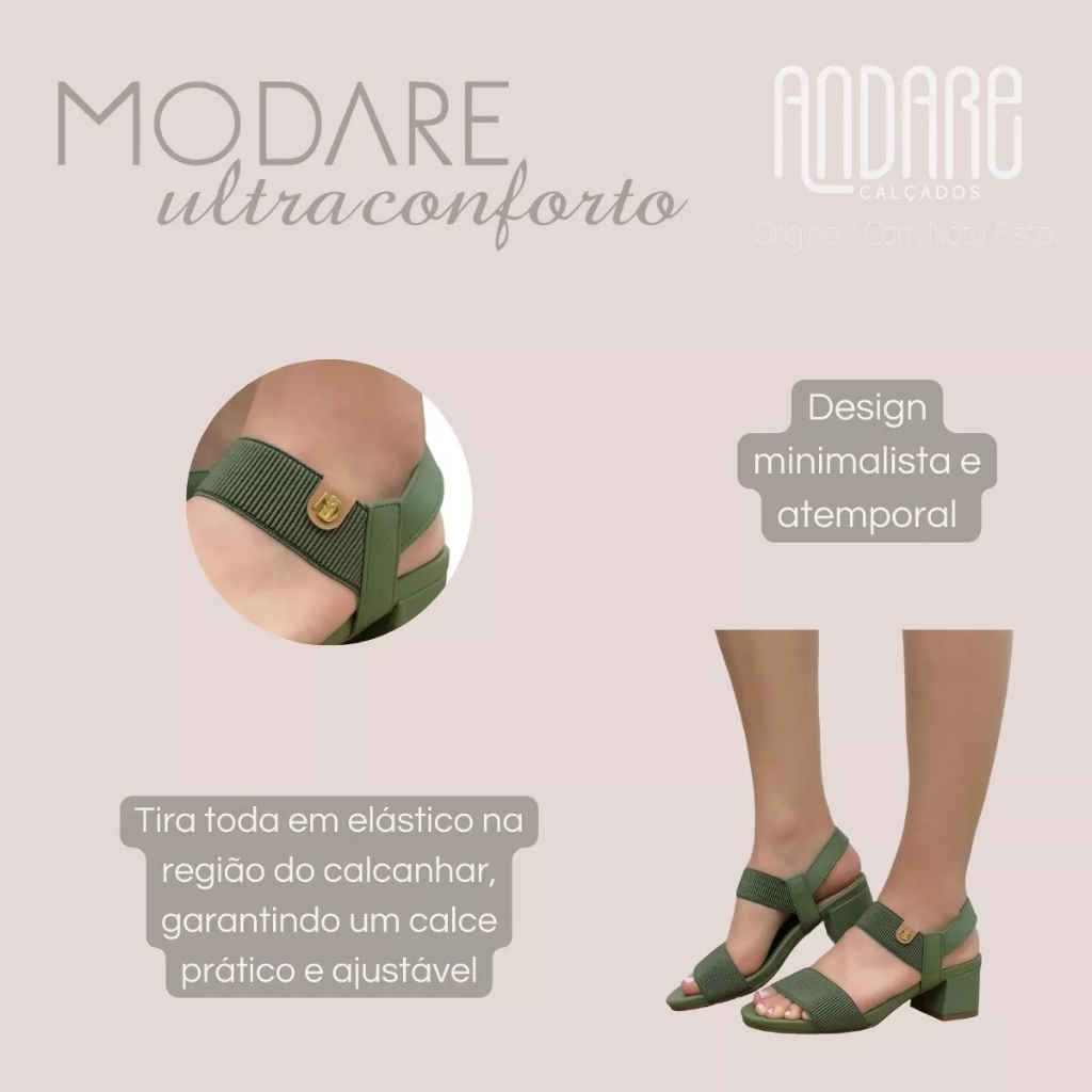 Sandalia Modare Salto Bloco Baixo Feminina Conforto Tiras Original