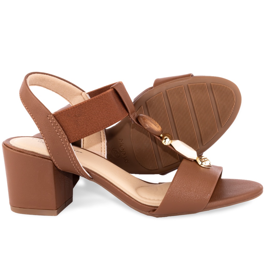 Sandália Modare Salto Bloco Feminina Conforto Pedraria 7109 Marrom