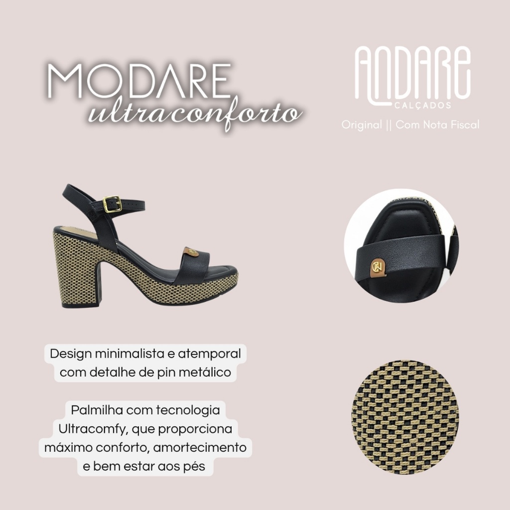 Sandalia Modare Ultra Conforto Feminina Salto Alto Macio Original