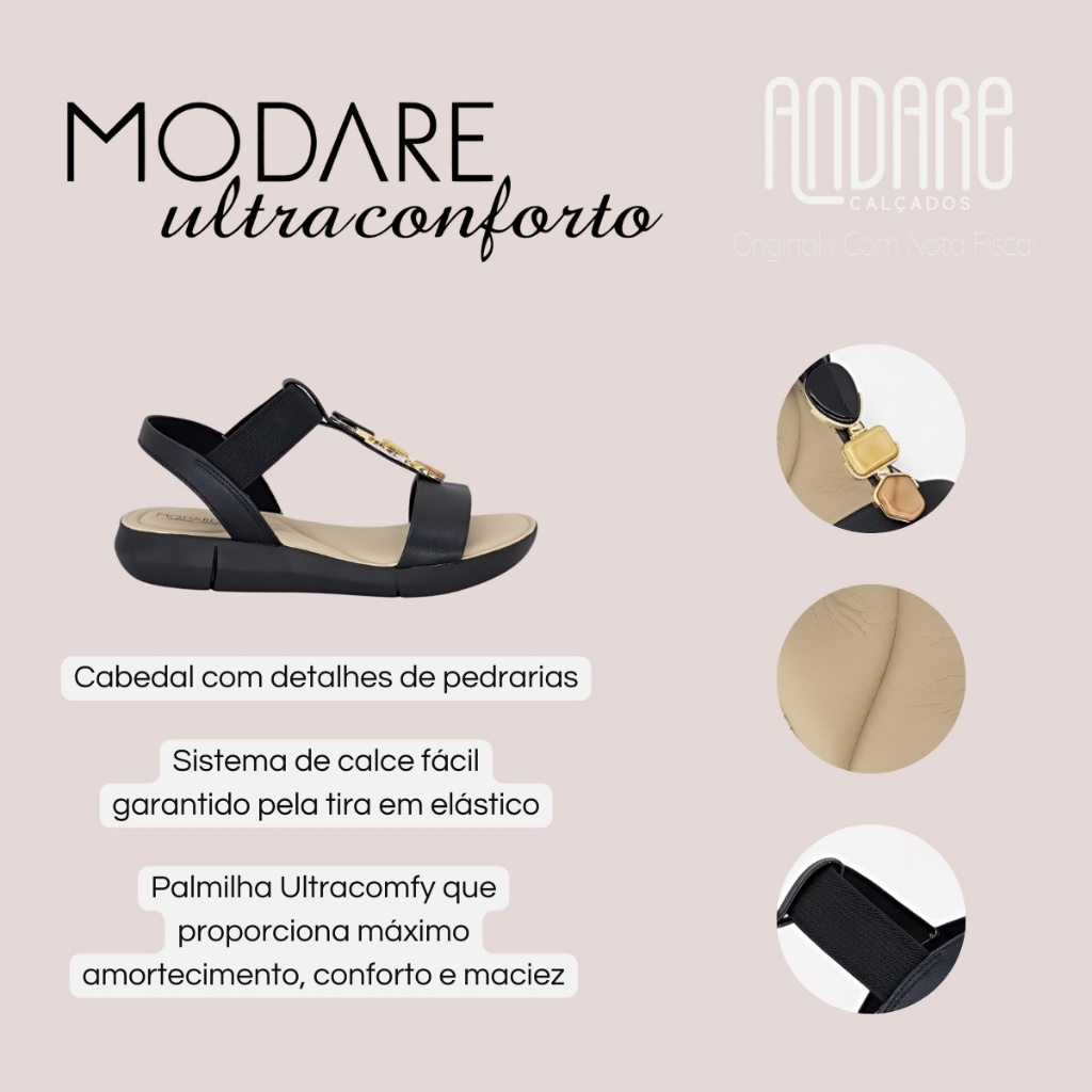 Sandalia Modare Ultra Conforto Ortopedica Feminina Pedraria Original