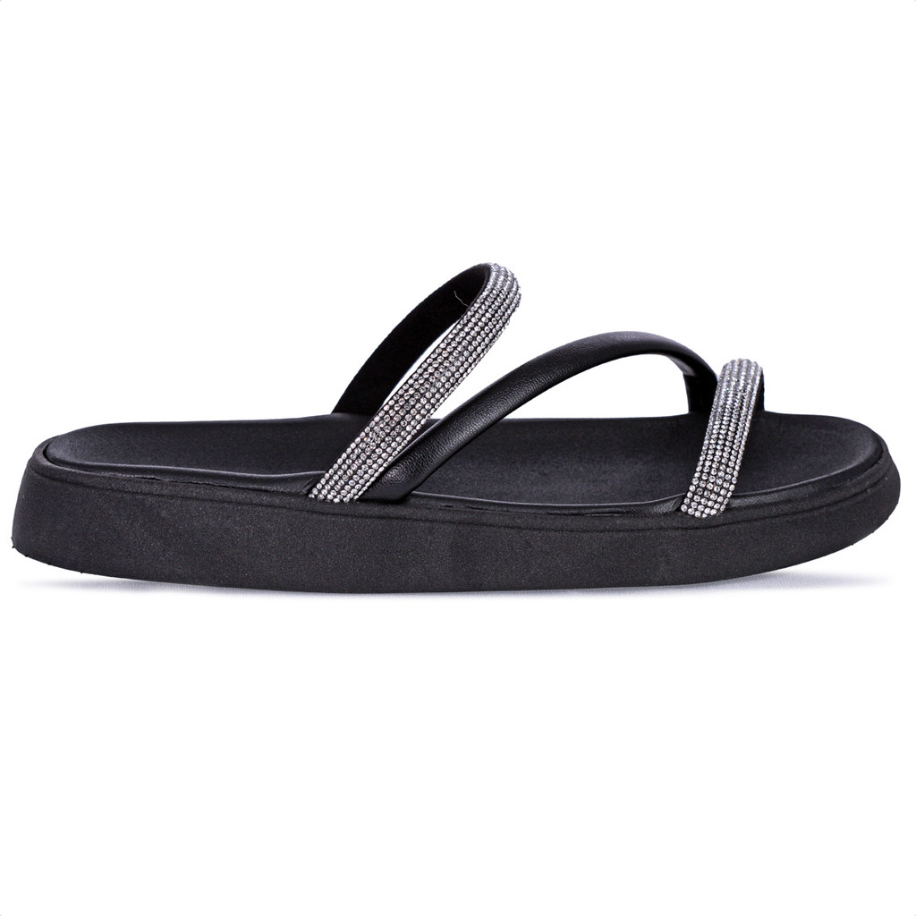 Sandália Moleca Feminina Leve Macia Moderna Confortável Papete Brilho Strass Modinha