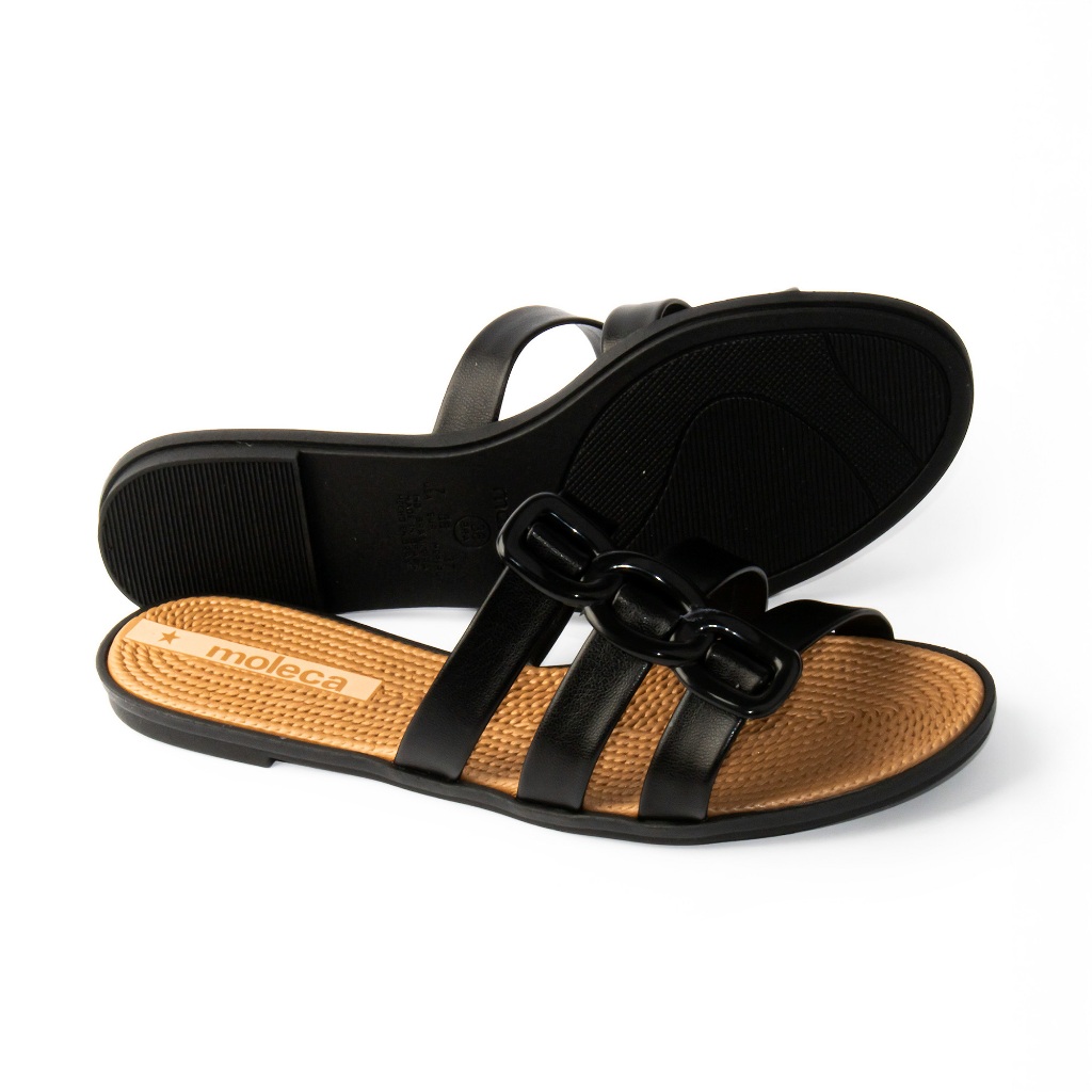 Sandália Moleca Feminina Rasteira Chinelo Casual 5297-566 Preto
