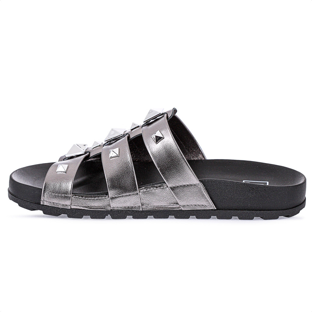 Sandália Moleca Papete Spikes Grafite - Feminino