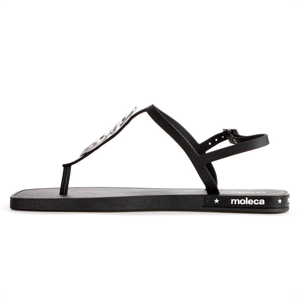 Sandália Moleca Tira Pronta C/ Detalhe Preto e Prata - Feminino