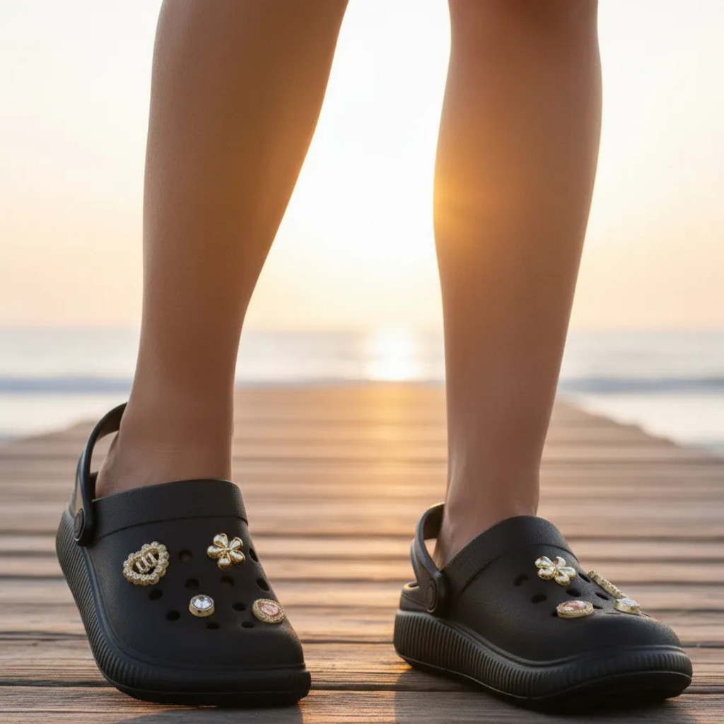 Sandália Molekinha Meninas Clog Colorida com Pins Dourados Metálicos Crianças Babuche Original