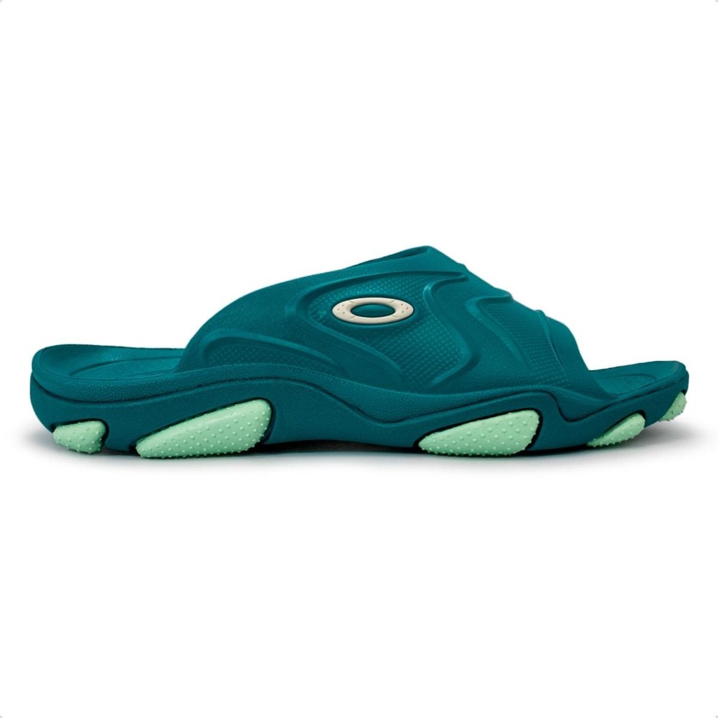 Baseado no design do icônico Oakley Teeth, o modelo Titan Slide possui um solado de borracha que garante máxima durabilidade e resistência a abrasão. A entressola é feita em EVA, que proporciona maior conforto. A parte superior conta com as tiras em TPU com logo Ellipse Oakley, material durável com design autêntico! Aproveite!