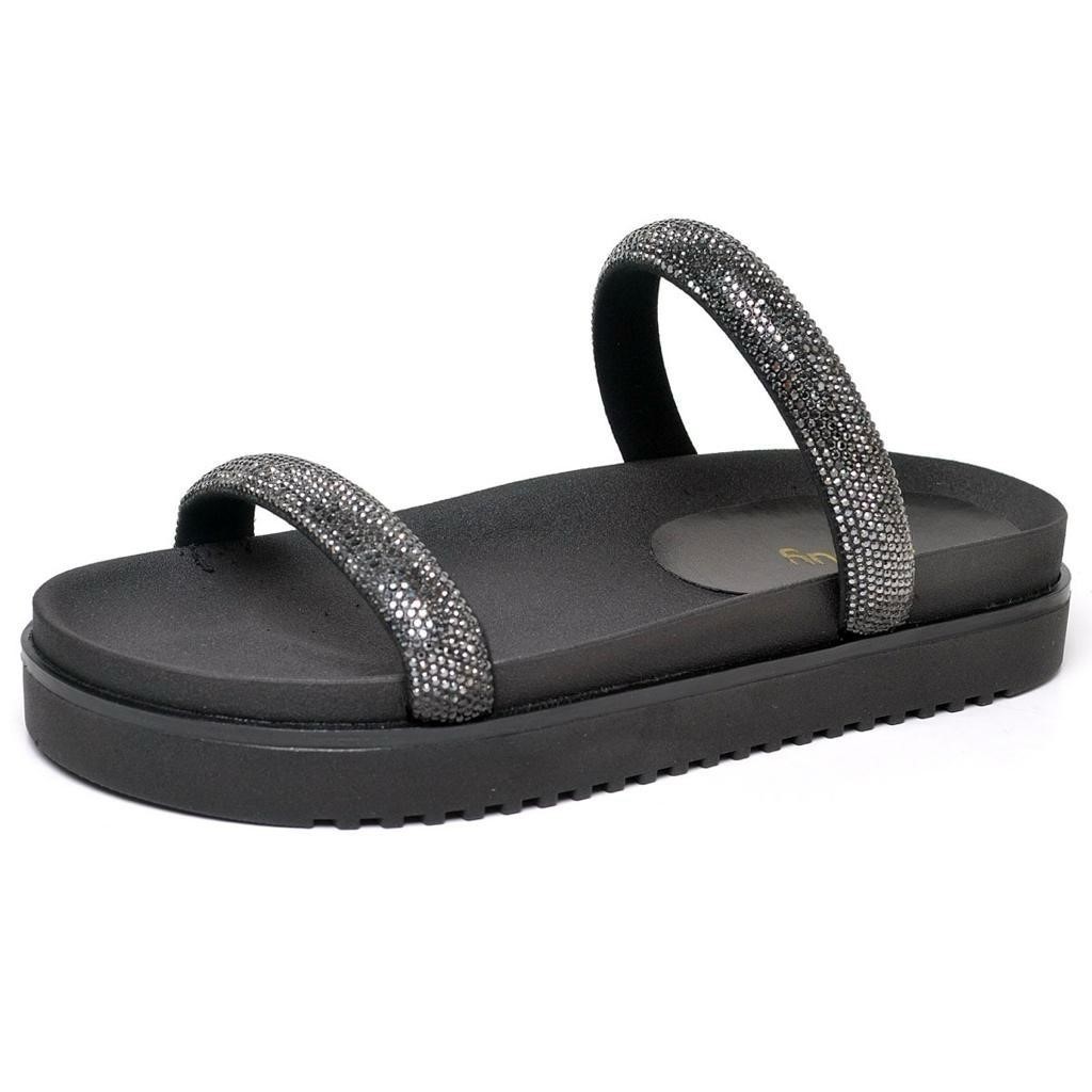 Sandalia Papete Dubuy Feminina Glitter Preta Mavi 2064FG