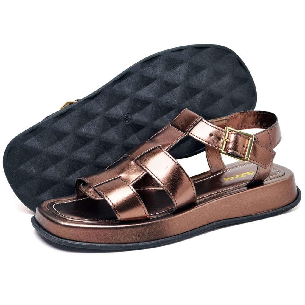 Sandalia Papete Dubuy Feminina Marrom Metalizado Dora 2056FG