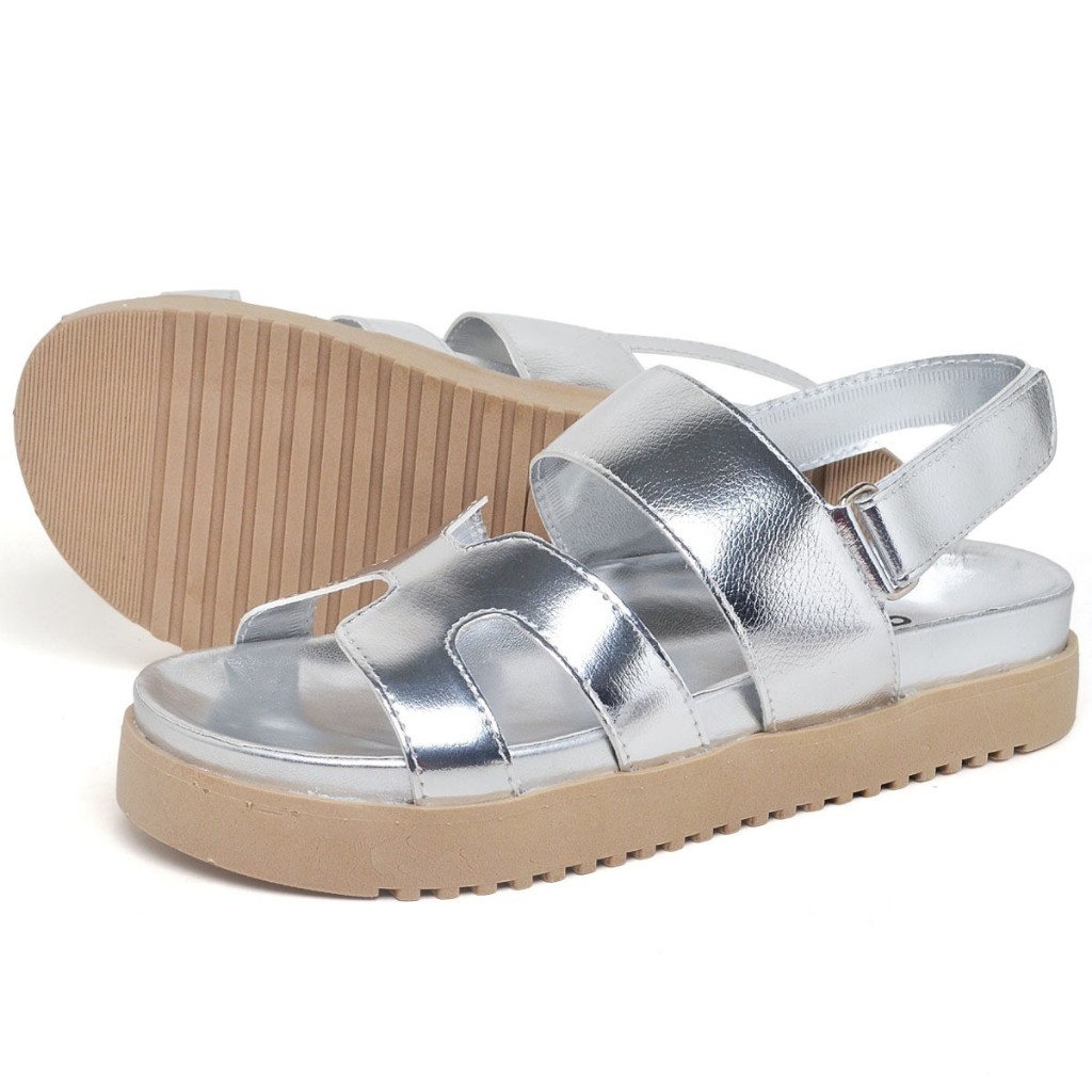 Sandalia Papete Dubuy Feminina Prata Metalizado Ema 2058FG