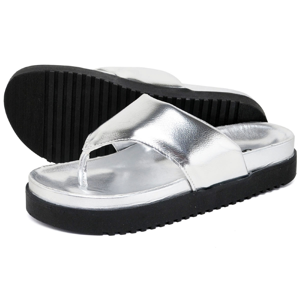 Sandalia Papete Dubuy Feminina Prata Metalizado Mali 2045FG