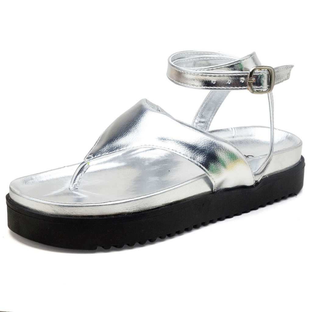 Sandalia Papete Dubuy Feminina Prata Metalizado Malu 2046FG