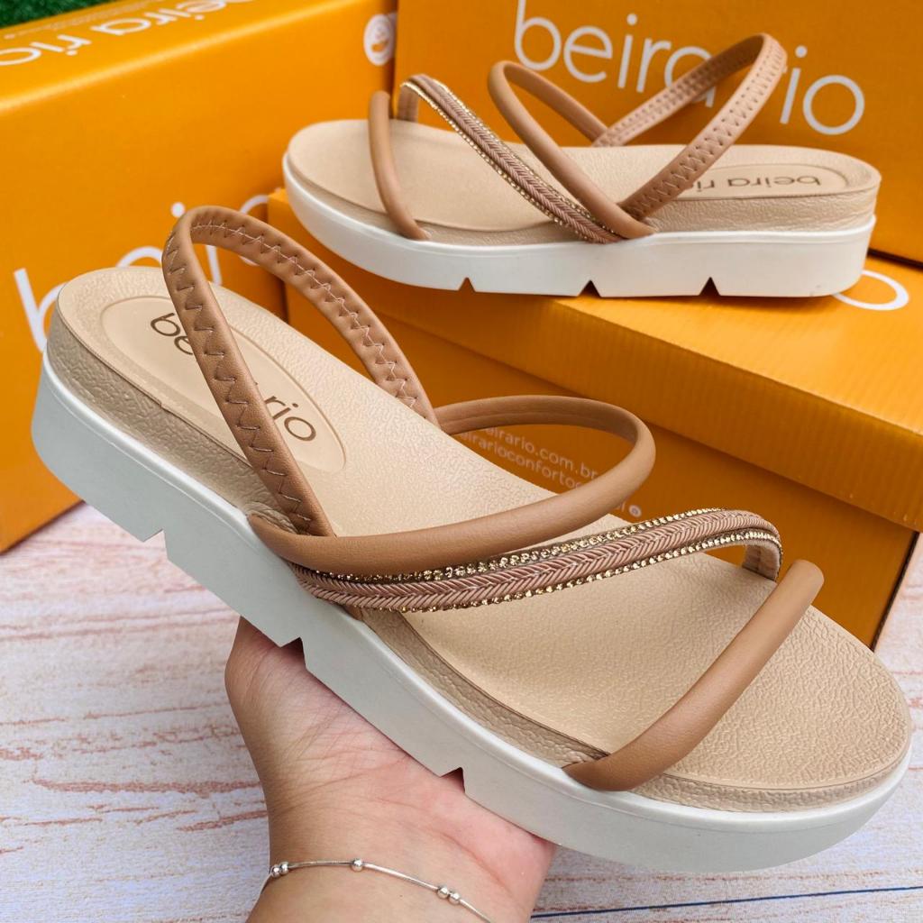 Sandália Papete Feminina Beira Rio Brilho Conforto Original Tira Elástico Tratorada