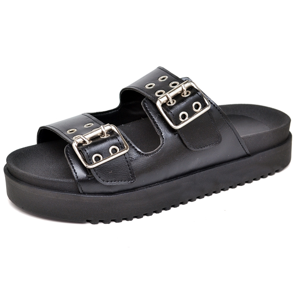 Sandália Papete Feminina Detalhes Em Fivela Preto Original Dubuy Daya 2078DB