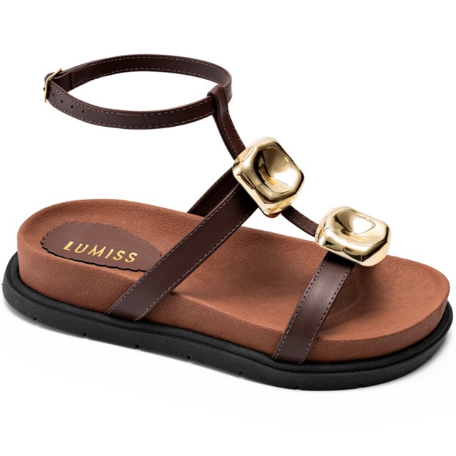 Sandália Papete Feminina Lumiss Confortável Blogueira Enfeite Metalizado Marrom