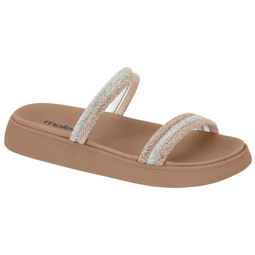 Sandália Papete Feminina Moleca Flat Tiras Strass Brilho Moda Casual Conforto