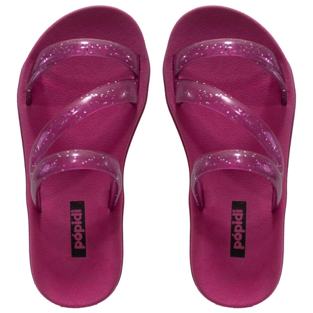 Tamanho da Forma: Normal - Recomendamos que compre o tamanho habitual. Cores Disponíveis: * Glitter Fumê * Glitter Prata * Glitter Rosa * Glitter Verde Cítrico Especificação Técnica: * Tipo de produto: Sandália/chinelo Infantil. * Material externo: PVC Emborrachado. * Material interno: PVC Emborrachado. * Sola: Micro Expandido Antiderrapante * Peso médio do produto: 521 gramas. * Tipo de Salto: Sem salto. * Altura da sola: 2,0 cm. * Fechamento: Fivela. * Numeração: Será enviada pelo critério de escolha. * Embalagem: Cada par vai na sua caixa individual. Tabela de medidas * 27/28 ---------------- 19,0 cm * 29/30 ---------------- 20,0 cm * 31/32 ---------------- 21,0 cm * 33/34 ---------------- 22,5 cm Como medir: Coloque o pé em cima de uma folha de papel e risque em volta dele com um lápis ou caneta. Meça o comprimento do topo até a base do contorno e adicione 0,5 cm de folga. Limpeza e Conservação: Fácil de lavar e secar! Mas evite usar substâncias abrasivas como álcool, detergentes ou solventes nos calçados, usar produtos neutros. Nunca os deixe de molho ou lave na máquina. A secagem deve ser feita em temperatura ambiente e na sombra, nunca no sol ou em máquinas. Dicas Pópidi Os chinelos de glitter infantis são perfeitos para adicionar brilho e alegria ao guarda-roupa das crianças. Com solado flexível, garantem uma caminhada confortável para os pezinhos em crescimento. Para destacar esse calçado encantador, combine-o com roupas neutras ou sólidas, como vestidos brancos, cinzas ou jeans, use também com shorts, leggings e camisetas básicas. A moda é você quem faz e com a Pópidi fica muito fácil ser quem quiser. Sobre a marca: Conectados com o universo infantil através de produtos que transmitem nossos valores, a Pópidi acompanha o dia a dia da criança com muito respeito, dedicação e atitude, desde o nascimento até a pré-adolescência. Oferecemos proteção, conforto e estilo, buscando sempre inovar a cada lançamento. Cuidando com excelência da relação pré e pós-vendas, afinal a satisfação de nossos clientes é muito importante para nós. Atendimento: Segunda à sexta: 07:00 às 18:00 Sábado: 08:00 às 12:00 Boas compras e volte sempre!!!