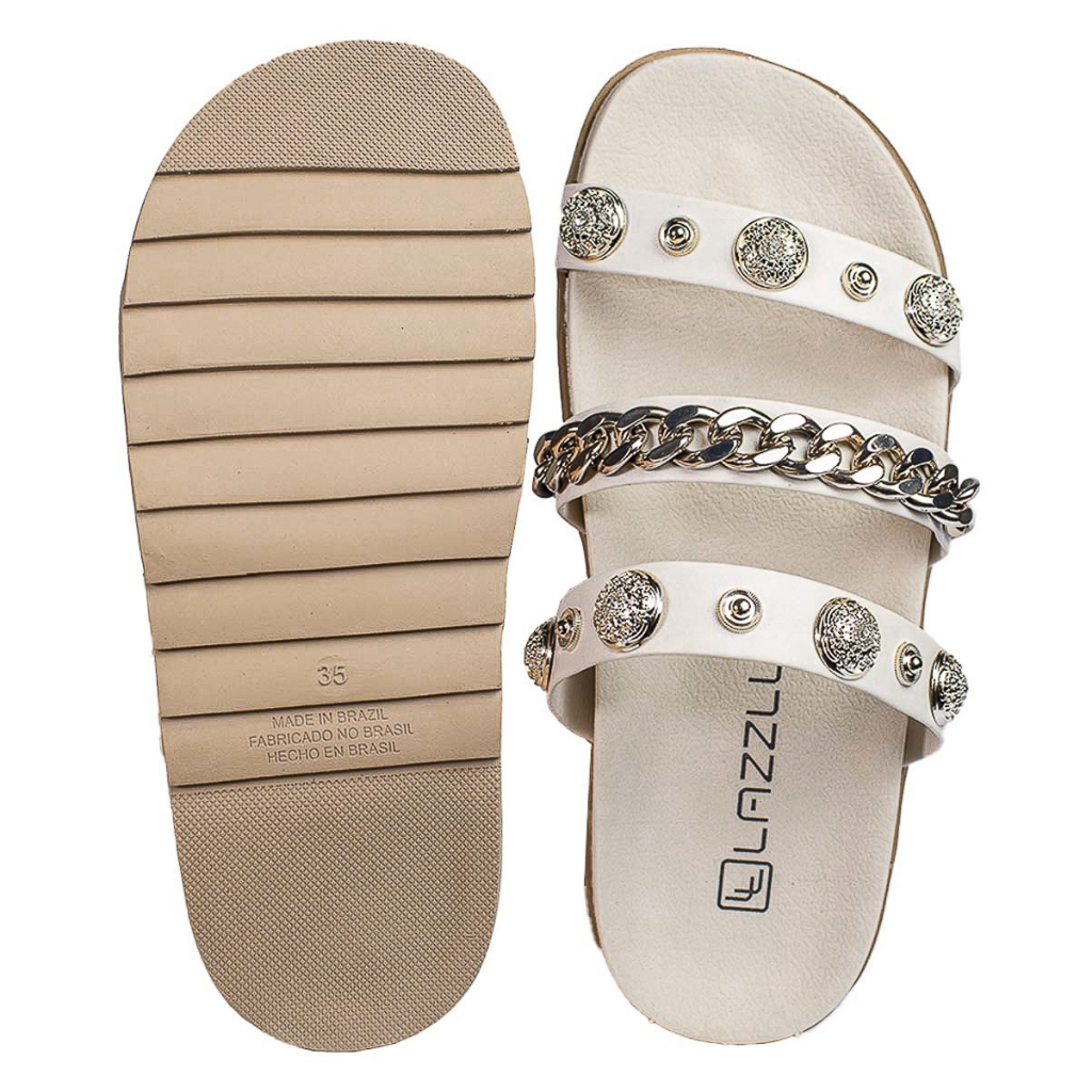 Sandália Papete Feminina Slide Rasteira Corrente