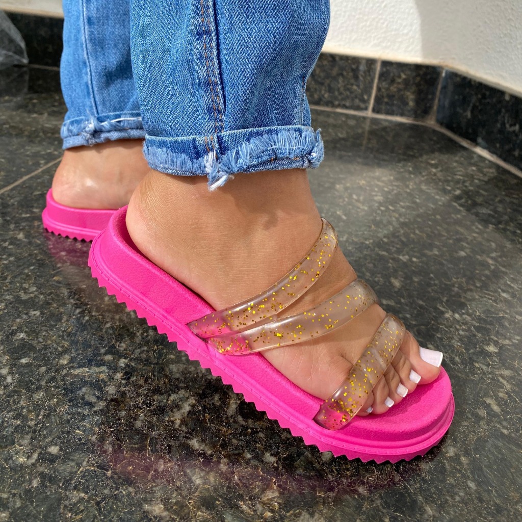 | Sandália Papete Feminina Tira Gliter Lançamento Versátil Comfort este produto | R$ 16,95 | 66% | 4.7/5 | 2 |