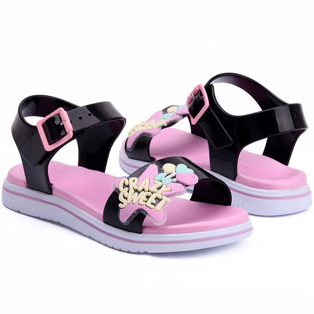 Sandália Papete Infantil Feminina WorldColors Manu - Preto/Rosa Bale
