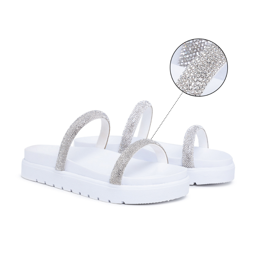 Sandália Papete Strass Pedraria Chinelo Rasteirinha Confortável Brilho