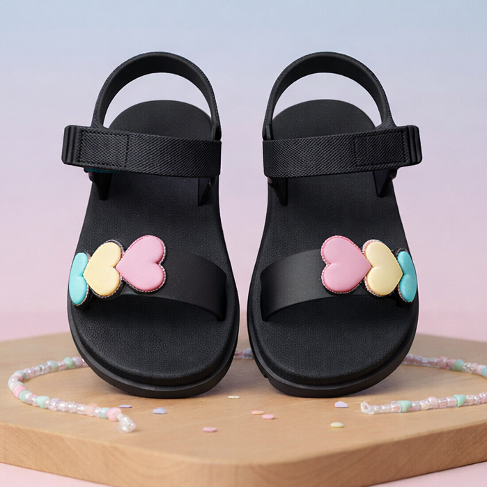 Sandália Papete Velcro Infantil Meninas Leve Confortável Antiderrapante Margarida Corações