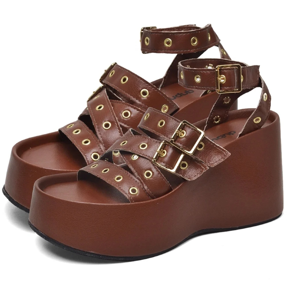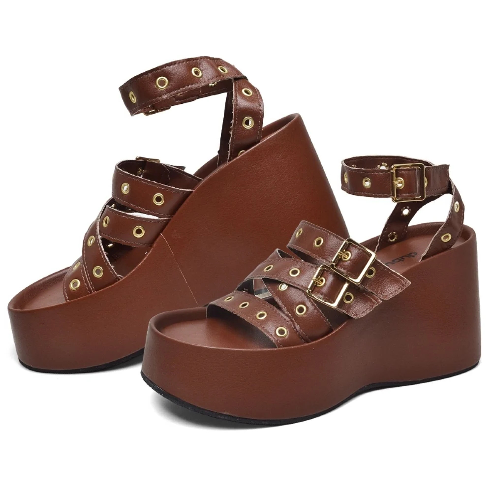 Sandalia Plataforma Feminina Fivela Dourado Tamanco Marrom Dubuy Blair 2102DB