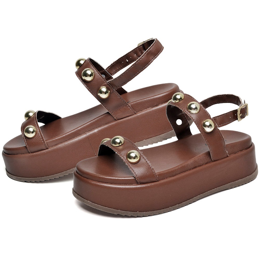Sandalia Plataforma Feminina Marrom Com Metal Original Dubuy Helo 2074DB
