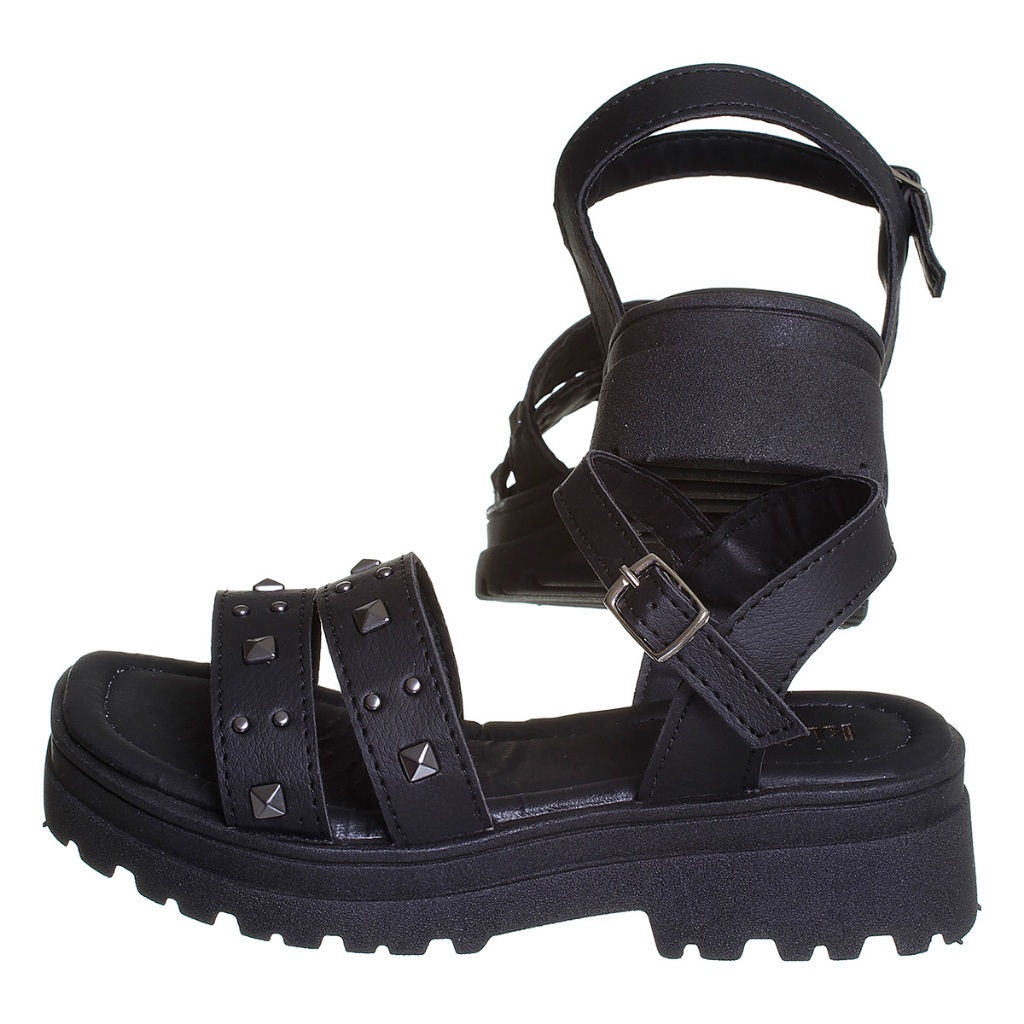 Sandália Plataforma Tratorada Infantil Feminina Preta com Spike Kidstep