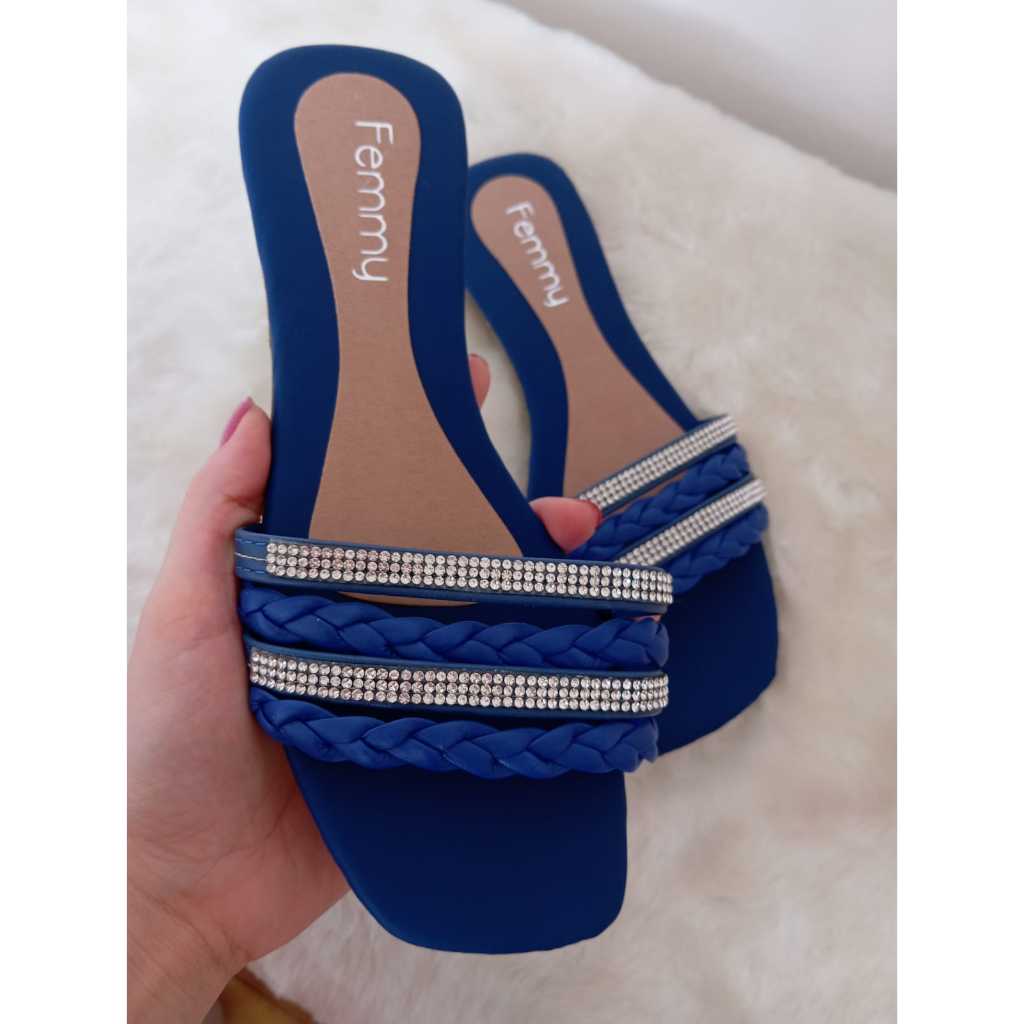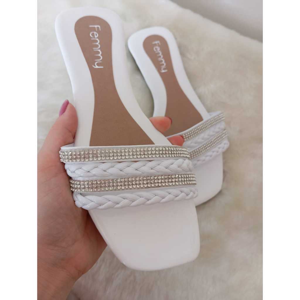 Sandália rasteira 4 Tiras Strass Trança confortável antiderrapante Rasteirinhas Femmy 01