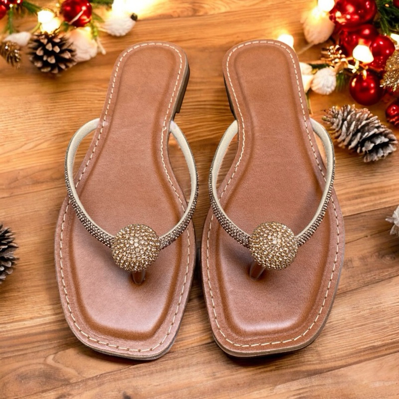 sandália rasteira Feminina com Detalhe em Strass Dourado botão