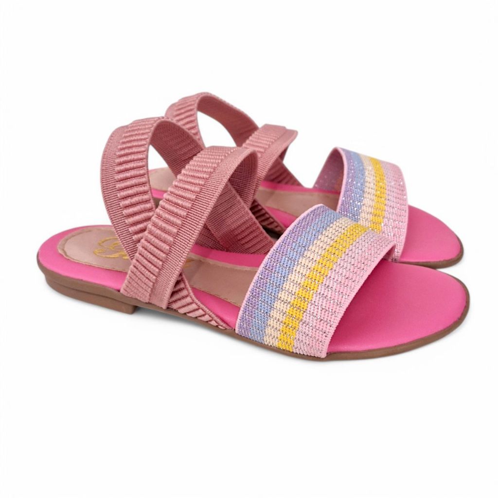 Sandália Rasteira Feminina Infantil/Juvenil Elástico Colorido Traseiro Calce Fácil
