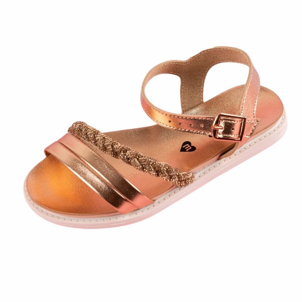 Sandália Rasteira Feminina Infantil Molekinha Metalizado Tira Pronta Strass Brilho Conforto