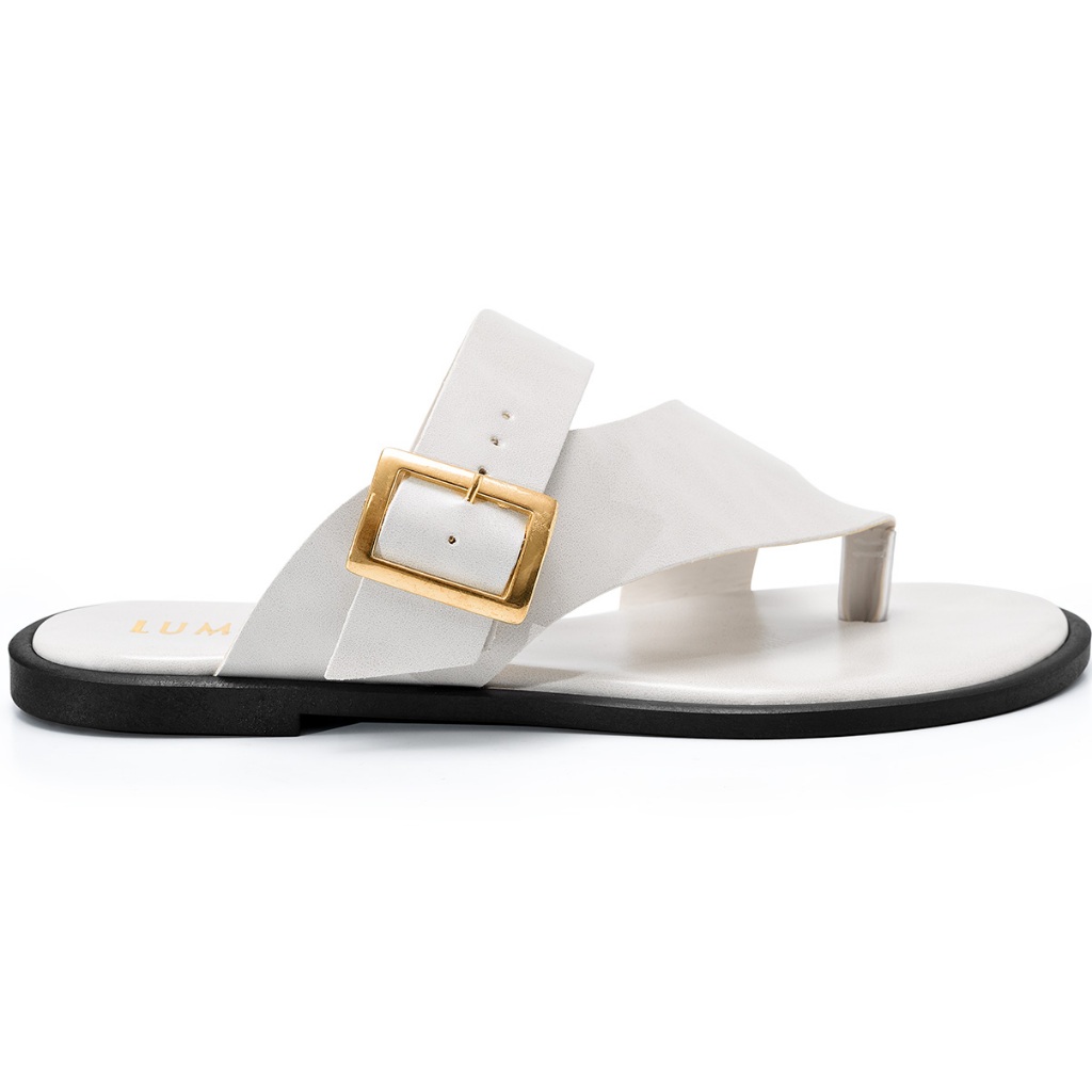 Sandália Rasteira Feminina Lumiss Chinelo Confortável Fivela Dourada Off White