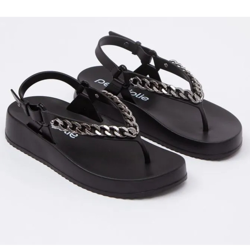 Sandália Rasteira Feminina Petite Jolie Corrente Metalizada Conforto