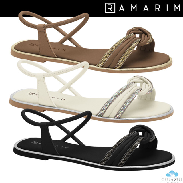 | Sandália Rasteira Feminina Ramarim Strass Detalhe Nó este produto | R$ 139,99 | 39% | 5.0/5 | — |