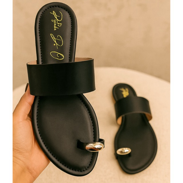 Sandália Rasteira Feminina Rasteirinha De Dedo Metal Calce Fácil Lançamento (Ref:6010)