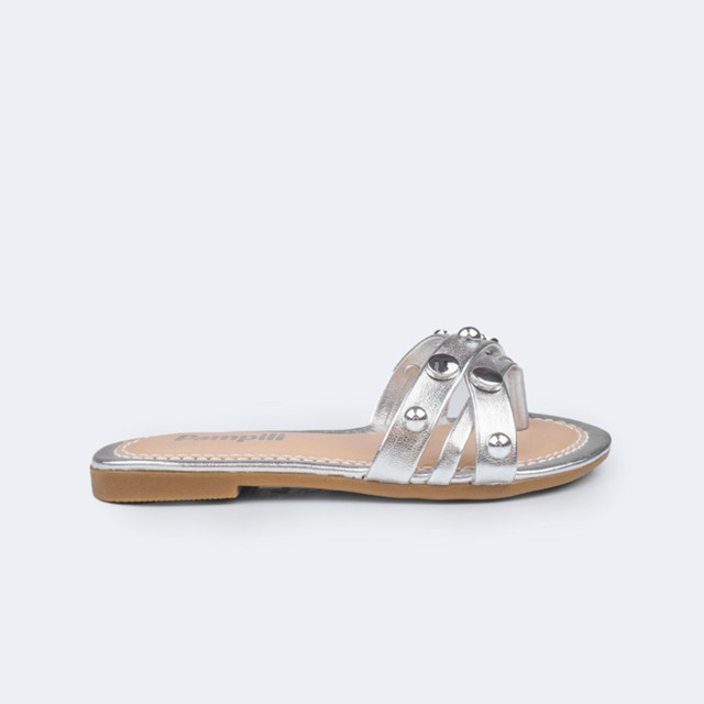 Sandália Rasteira Infantil Tiras Cruzadas Com Tachas Pampili