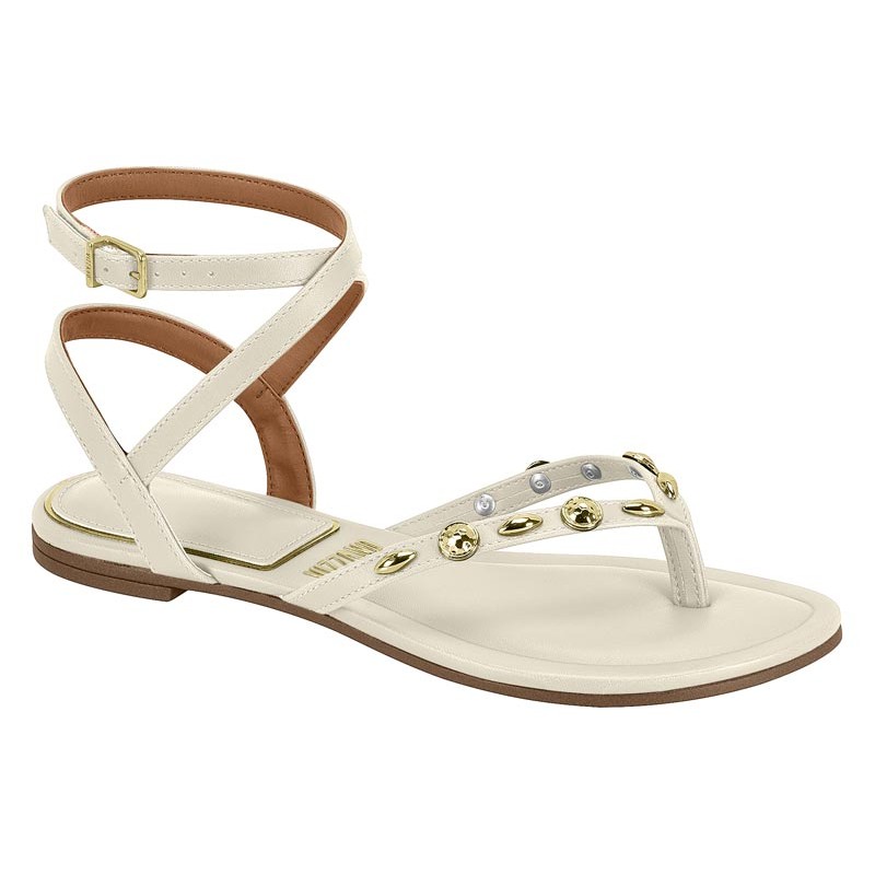 Sandália Rasteira Vizzano Feminina Pedrarias Douradas Fecho Fivela Tiras Cruzadas