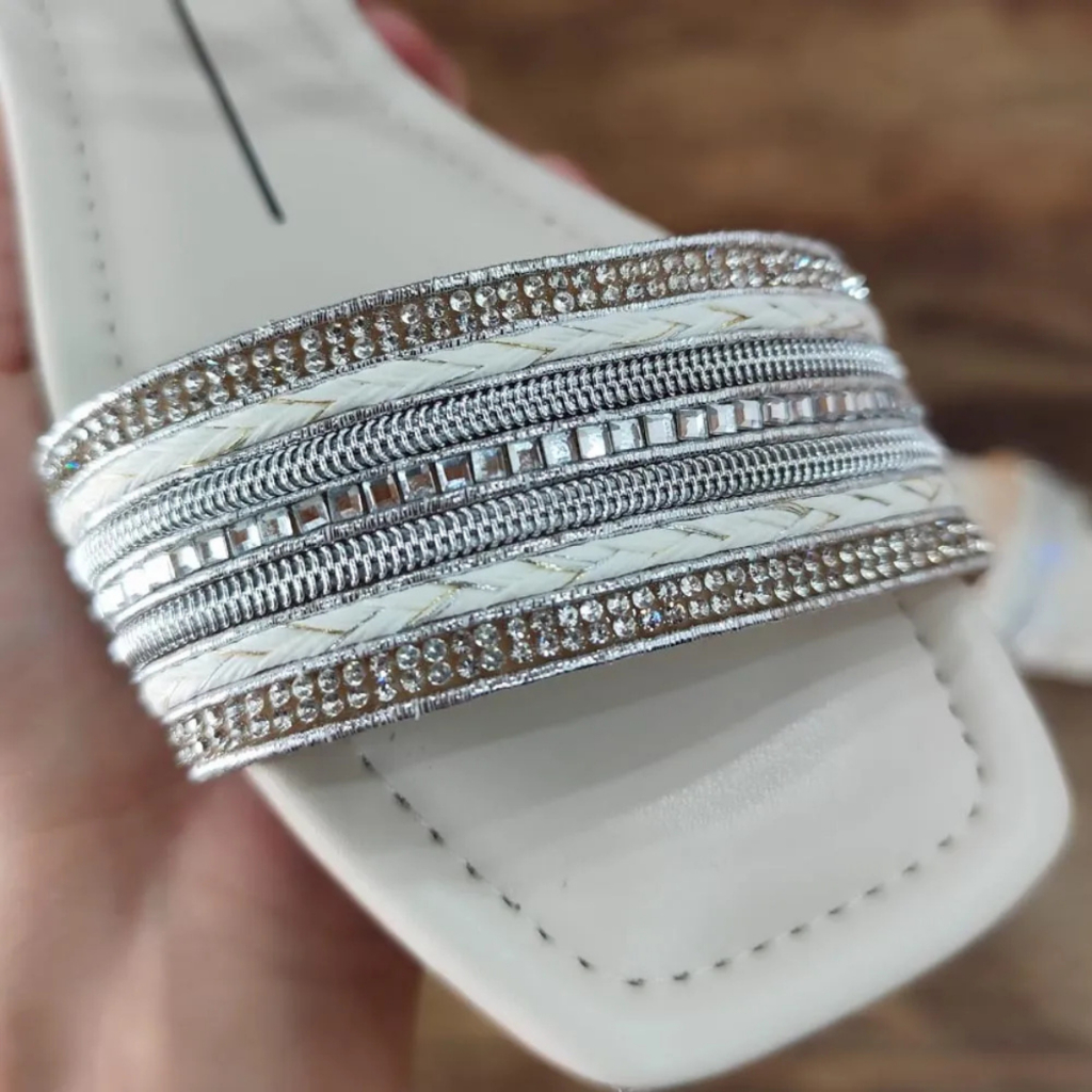 Estilo, leveza e conforto em cada detalhe. A sandália Moleca Rasteira Brilho Strass combina design moderno com praticidade para o dia a dia. A Sandália Feminina Moleca Rasteira Brilho Strass é ideal para mulheres que buscam um calçado versátil, confortável e cheio de charme. Com design elegante e contemporâneo, o modelo traz bico quadrado e tiras romanas que elevam qualquer produção, sendo perfeita para os dias quentes de primavera e verão. Seu detalhe em strass adiciona um brilho delicado que valoriza o look, enquanto a fivela regulável garante ajuste prático e seguro. Confeccionada em materiais de alta qualidade, como napa Turim e sintético, a sandália une durabilidade e maciez no calce. O solado em borracha TR proporciona conforto a cada passo, sendo ideal para quem precisa de leveza durante longas horas em pé ou em movimento. Uma peça indispensável para o guarda-roupa feminino, combinando facilmente com vestidos, saias, shorts e calças leves. Características + Ficha técnica Nome: Sandália Feminina Moleca Rasteira Brilho Strass Gênero: Feminino Indicado para: Dia a Dia / Casual / Verão Estilo da peça: Rasteira, tiras romanas Material: Sintético / Napa Turim Palmilha: Macia e confortável Bico: Quadrado Ajuste: Fivela regulável Salto: 1cm - Aproximadamente Detalhes: Strass aplicado nas tiras para brilho delicado Solado: Borracha TR antiderrapante Origem: Nacional Marca: Moleca Adicione charme e praticidade ao seu dia a dia com a Sandália Feminina Moleca Rasteira Brilho Strass. Versátil, elegante e confortável, é a escolha perfeita para compor looks frescos e modernos. Peça agora e sinta a diferença de caminhar com estilo Moleca! Garantia do vendedor: 30 dias