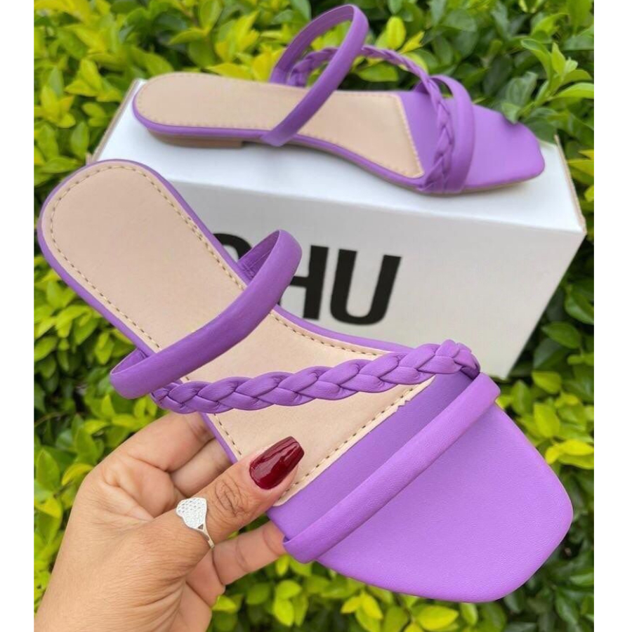 Sandália Rasteirinha Papete Confortável dia a dia Casua Blogueira Colorida Macia