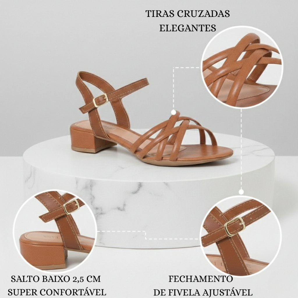 Sandália Saltinho Baixo Feminina Tira Fivela Trançada Básica Confortável Promoção Tendência Moda