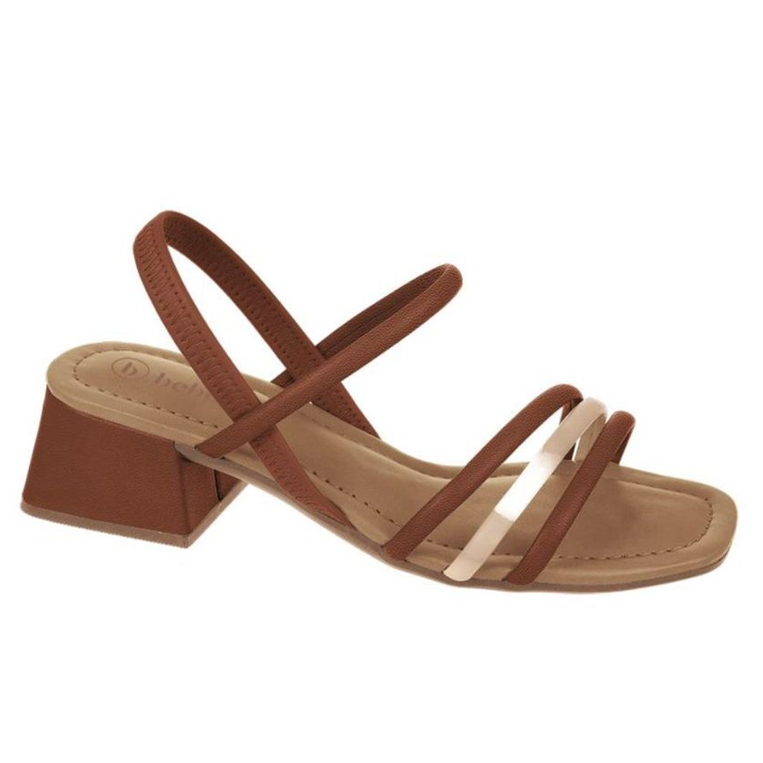 Sandália Salto Bloco Baixo Quadrado Feminina Bebecê Tiras Calce Fácil Versátil Macia Original