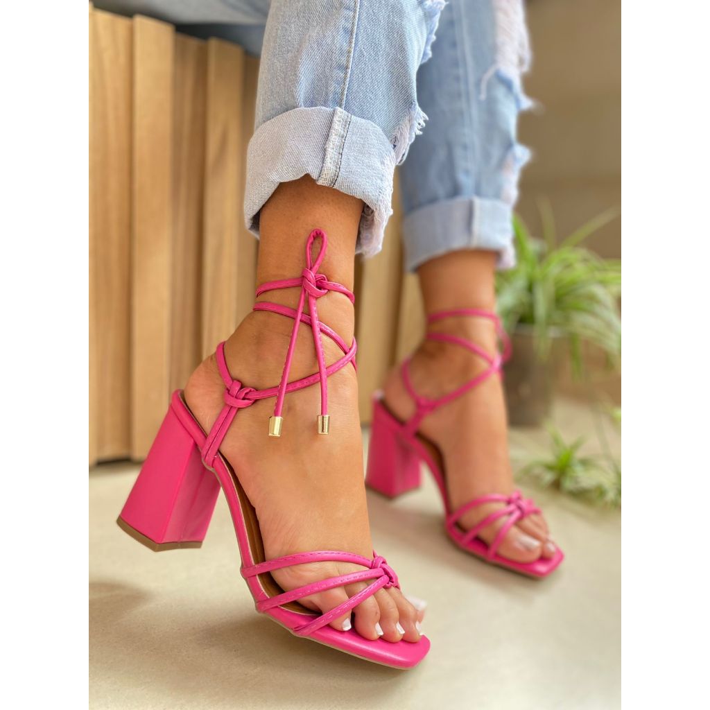 SANDALIA SALTO BLOCO COM AMARRAÇÃO TIRAS